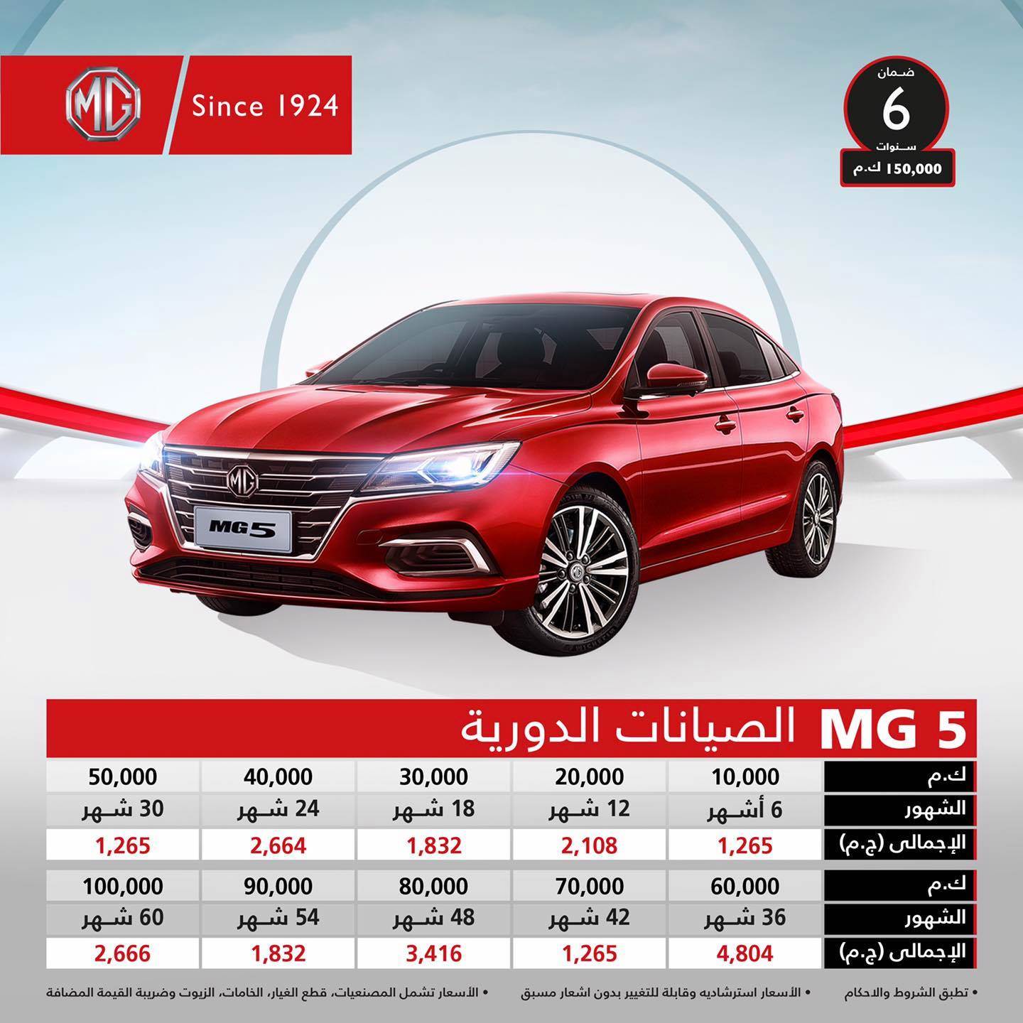 وتبدأ أسعار الصيانة الدورية لـMG 5 من 1265 جنيه وتصل الي 2666 جنيه لصيانة 100 ألف كم وأغلي صيانة لها صيانة 60 ألف كم بواقع 4804 جنيه.