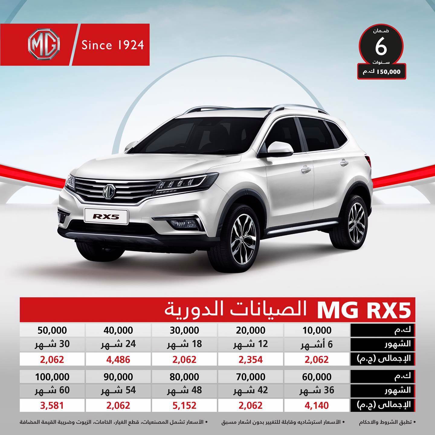 وتبدأ أسعار الصيانة الدورية لـMG RX5 من 2062 جنيه وتصل الي 3581 جنيه لصيانة 100 ألف كم وأغلي صيانة لها صيانة 80 ألف كم بواقع 5152 جنيه.