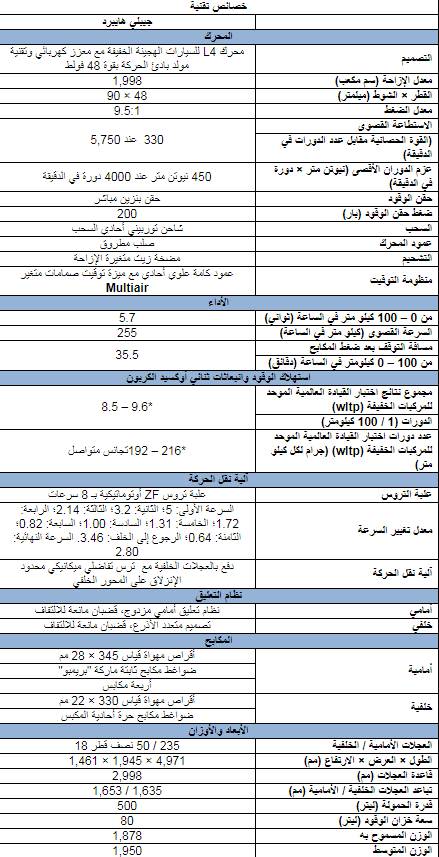 سيارة هجينة خفيفة في تناغم رائع مع جوهرها العريق، اختارت مازيراتي حلّاً هجيناً يركز بشكل رئيسي على تحسين الأداء، ويساهم في الوقت ذاته في الحد من استهلاك الوقود وتفادي إطلاق الانبعاثات الكربونية. وتستفيد التقنية الهجينة من الطاقة الحركية التي تراكمها السيارة أثناء سيرها، لتقوم لاحقاً باستعادتها وتحويلها إلى طاقة كهربائية خلال خفض السرعة أو ضغط المكابح، وتخزنها في البطارية. وتجمع منظومة القوة المحركة المبتكرة – والتي جاءت نتاج أعمال التطوير الهندسي المكثفة التي أجراها تقنيو ومهندسو Maserati Innovation Lab في مودينا – بين محرك احتراق داخلي (من 4 أسطوانات، وشاحن توربيني، ومعدل إزاحة يبلغ 2,0 ليتر) ومولد تيار متردد بقدرة 48 فولط مع شاحن كهربائي فائق إضافي (معزز كهربائي) مدعوم ببطارية. ويمتاز هذا الحل بأنه فريد من نوعه في فئته، وهو الأول ضمن الجيل الجديد لمنظومات القوة المحركة، ويحقق التوازن الأمثل بين مزايا الأداء والكفاءة ومتعة القيادة. وقد تم تثبيت البطارية في الجزء الخلفي من السيارة، مع الاستفادة من وجودها لناحية توزيع الوزن. ويزن هذا الطراز أقل من سيارات الديزل بنحو 80 كيلوجراماً. وبفضل قوة محركها البالغة 330 حصان وعزم دوران يعادل 450 نيوتن متر، حيث يتم توليد كل ذلك من 1,500 دورة في الدقيقة فقط، تحظى سيارة جيبلي هايبرد الجديدة ببيانات فائقة الروعة: مع سرعتها القصوى التي تبلغ 255 كيلومتراً في الساعة، و تسارع من 0 – 100 كيلومتر في الساعة في غضون 5.7 ثانية. وستحافظ جيبلي هايبرد على الصوت الذي يميز جميع طرازات مازيراتي، بفضل العادم المحسن المزود بمرنانات مصممة خصيصاً لهذا الطراز.