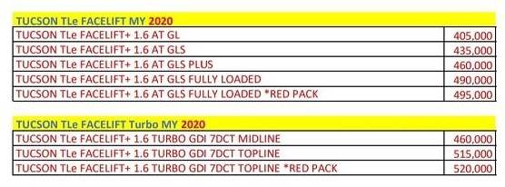 ويوضح الجدول التالي أسعار جميع فئات السيارات هيونداي توسان 2020