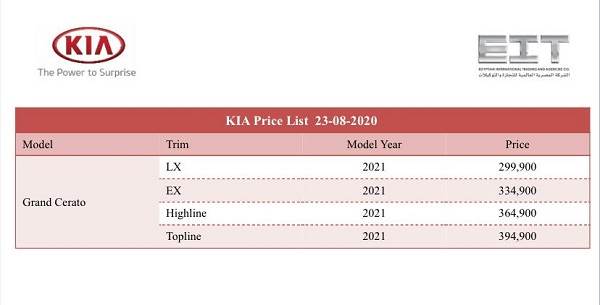 جدير بالذكر أن آخر أسعار لكيا جراند سيراتو موديل 2020 في السوق المصرية كانت كالتالي: