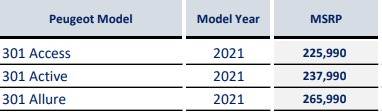 وشهدت أسعار السيارة بيجو 301، زياداتمقارنة بأسعار موديل 2020.
