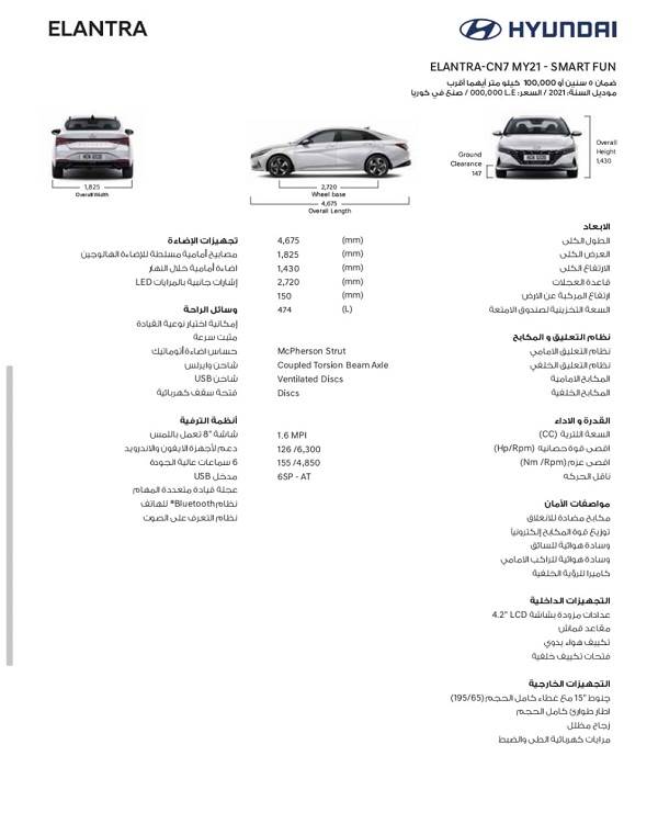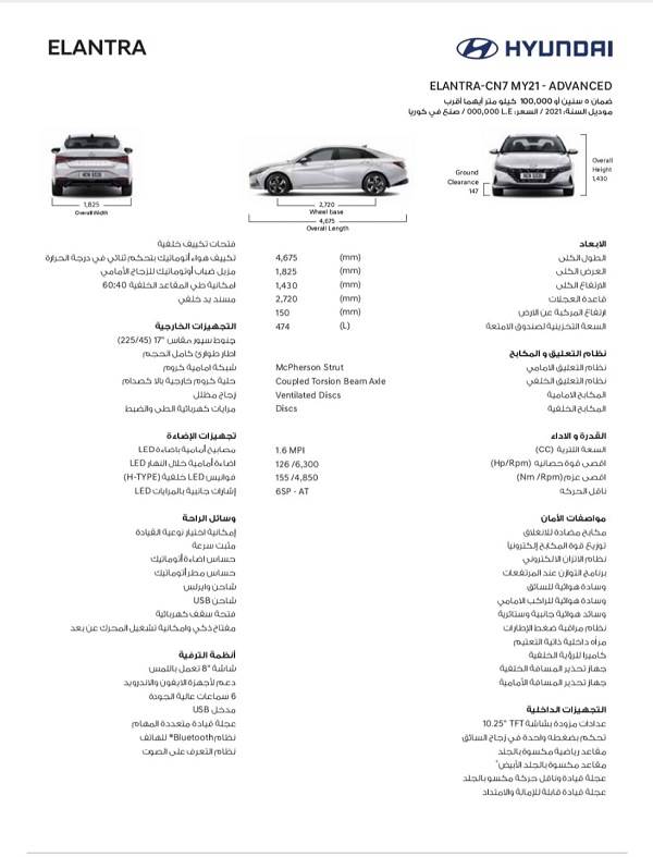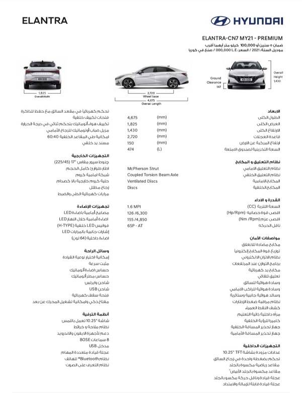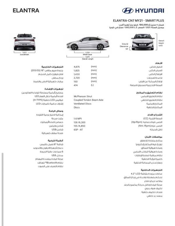 ويقدم “مارشدير”، في الأشكال التالية مواصفات كل فئة من الفئات الـ 7 للسيارة هيونداي إلنترا AD الجديدة.