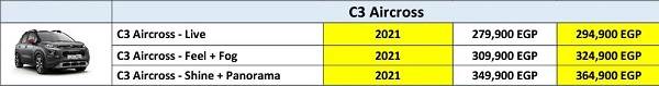 وشهدت القائمةطرح موديل 2021 من طراز ستروين C3 إير كروس، بزيادة سعرية بلغت 15 ألف جنيه، على جميع فئات السيارة.