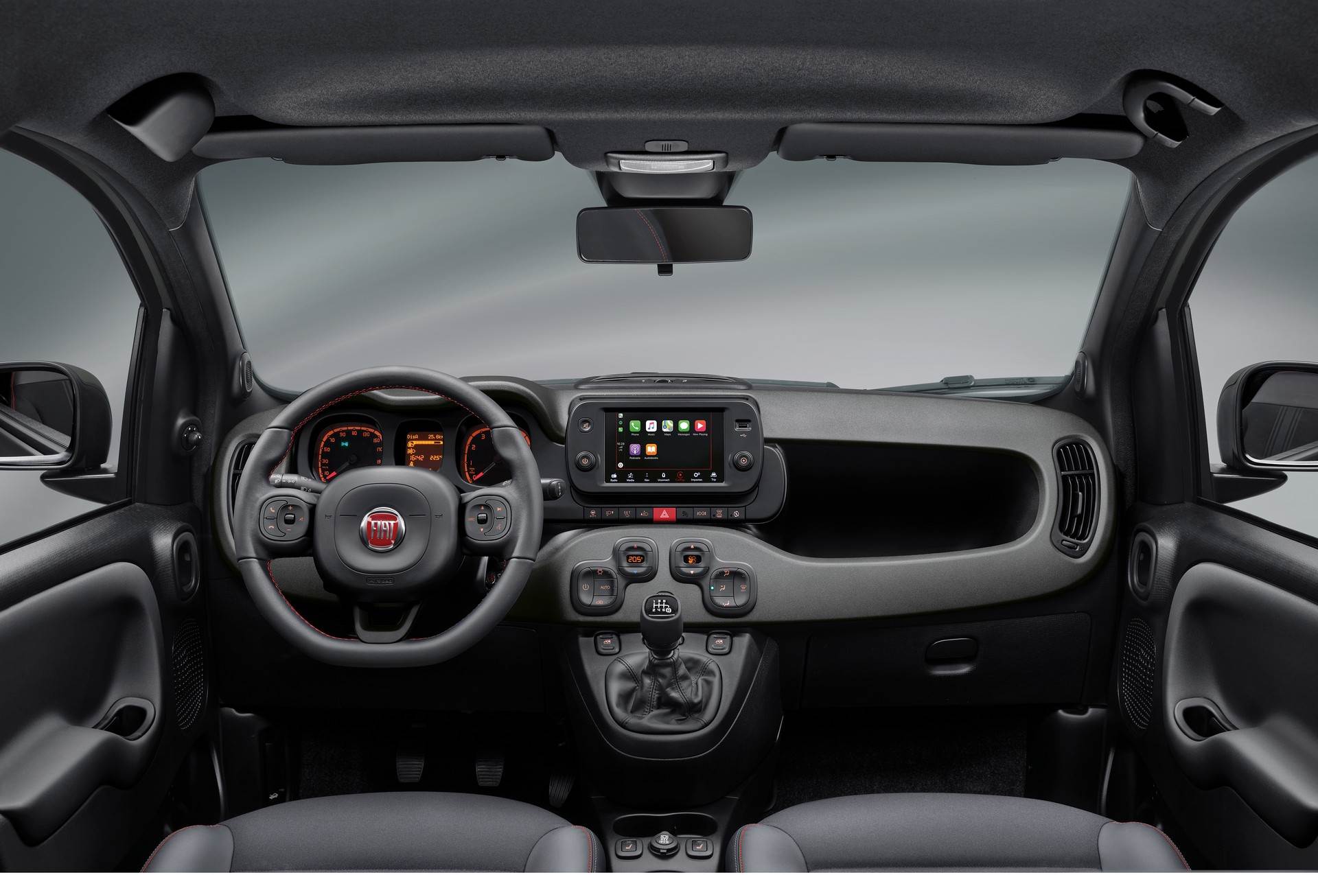 كما تم تطوير مقصورة السيارة من الداخل كذلك بالنسبة لباندا سبورت مع لوحة قيادة بلون تيتانيوم وتبطين جلدي لألواح الأبواب وتبطين أسود للسقف مع فرش رمادي داكن للمقاعد ، وتستمر نسخة سبورت مثل باقي فئات باندا 2021 الأخري بنفس الشاشة 7 بوصة الجديدة التي تدعم راديو رقمي ونظامي أبل كار بلاي وأندرويد أوتو.