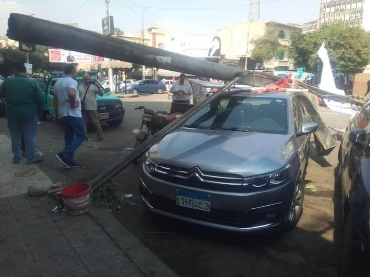 سقوط أعمدة انارة على سيارات ملاكي في مصر الجديدة