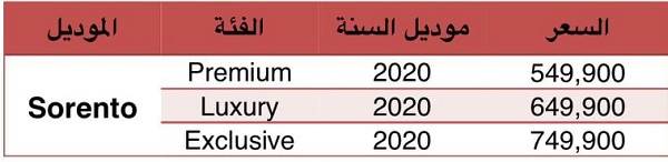 ويوضح الجدول التالي أسعار كيا سورينتو 2020 بعد التخفيضات الجديدة، كما قدم وكيل كيا عرضاً خاصاً يشمل ترخيص سنتين، وسنتين صيانة مجانية لفترة محدودة.