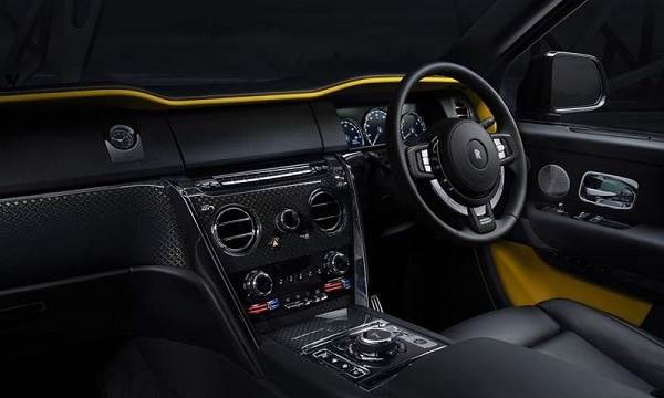 تزخر المقصورة الداخلية بالعديد من اللمسات الجمالية، بدايةً من اللون الأسود الممزوج مع الخطوط التصميمية الصفراء، وتمتد تلك اللمسات الصفراء على المقاعد ولوحة القيادة، وتتميز كالينان بلاك بادج بالسقف المضاء بـ1.344 مصباح صغير يحاكي إضاءات النجوم.