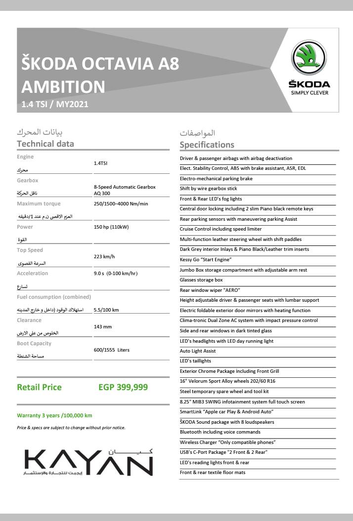 قدمت شركة كيان وكيل سكودا في مصر الجيل الجديد من أوكتافيا أخيراً الي السوق المصري بعد طول انتظار مع ضمان 3 سنوات أو 100 ألف كم، وتقدم السيارة في 3 فئات متنوعة سنتعرف عليها في السطور التالية :