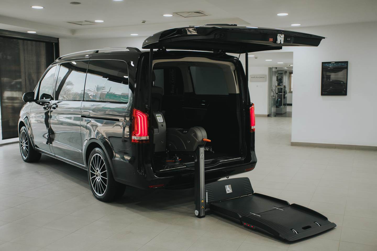 أكدت شركة مرسيدس ايجيبت توفر سيارتها V-Class في مصر في الوقت الحالي خيث تتاح السيارة بتجهيزات خاصة تمكن من ادخال الكراسي المتحركة لأصحاب الاحتياجات الخاصة الي داخل المركبة الكبيرة كأحد الحلول المناسبة لهم من خلال توفر نظام رفع في السيارة يمكن توفيره حسب الطلب لتسهيل وصول الكراسي المتحركة الي داخل السيارة.