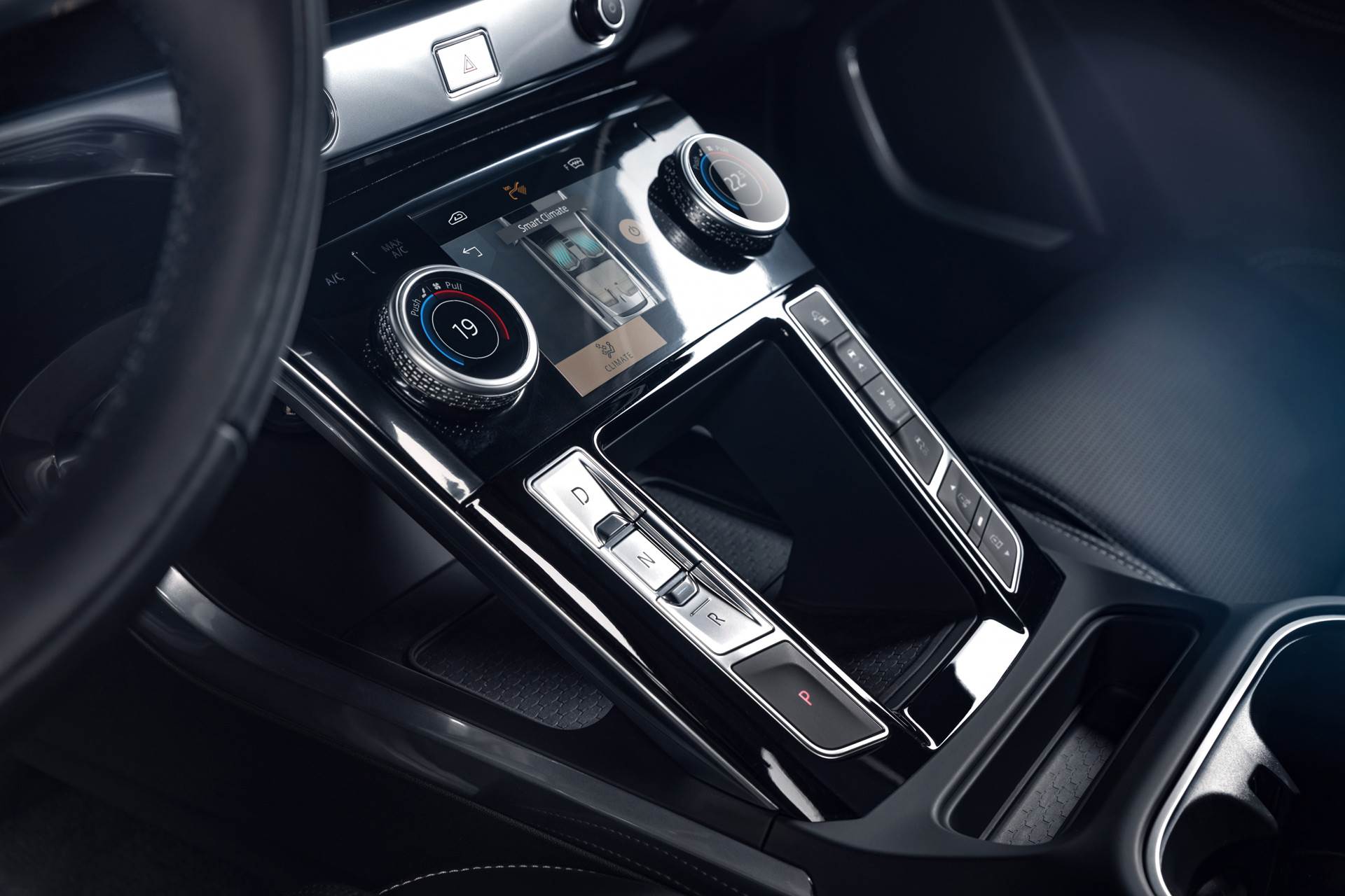 وتتمتع المقصورة الداخلية للسيارة بتوازن بين السيارات الفاخرة والرياضية والمنصة الكهربائية الجديدة للسيارة تعدل شخصيتها القابلة لاستيعاب 5 أفراد مع توفر مساحة أكبر بين المقاعد الامامية والخلفية مع تحرك المقاعد الأمامية للامام في ظل عدم وجود المحرك مع لوحة عدادات منخفضة الموقع ومقاعد رياضية ورحابة داخلية كبيرة ولمسات فاخرة في الداخل وتطريز متناقض. ويتاح للسيارة نظام تنقية للهواء وفلتر مع امكانية التحكم في تبريد المقصورة أو تدفئتها قبل الولوج اليها عن بعد ، فيما يتاح للسيارة نظام صوت ميريديان وعرض البيانات على الزجاج الامامي وشاشة عرض تفاعيلة للقيادة ومع شاشة 10 بوصة أساسية و5.5 بوصة معها اضافية اختيارية .