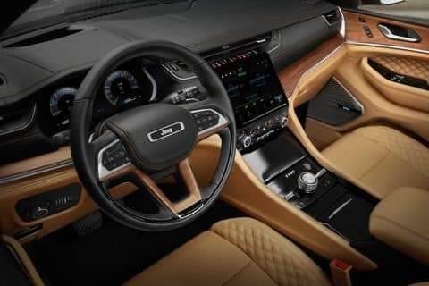 تختلف المقصورة الداخلية لجراند شيروكي L بشكل كبير عن جراند شيروكي القياسية، حيث زودت بلوحة تحكم جديدة تضم شاشة لمسية مقاس 8.4 بوصة، أو شاشة لمسية اختيارية مقاس 10.1 بوصة، مع أحدث نظام ترفيهي UConnect 5 من الصانع الأمريكي، والذي يدعم آبل كاربلاي لاسلكياً، وأندرويد أوتو، مع أجهزة قياس رقمية مقاس 10.3 بوصة قابلة للتعديل، ونظام رؤية ليلية.