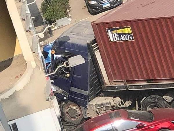 مقطورة تقتحم معرض "السيد المكاوي" وتدمر العديد من السيارات