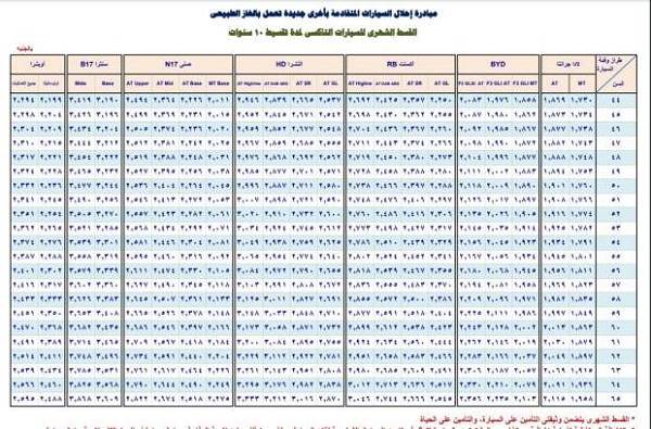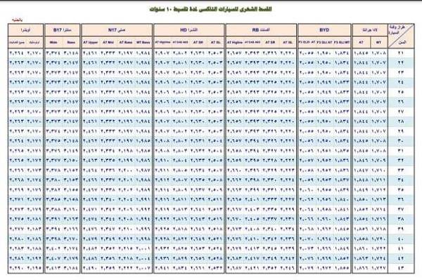 ثامناًالأقساط الشهرية للسيارات التاكسي بفترة سداد تصل إلى 10 سنوات للمشاركين الذين تتراوح أعمارهم بين 44 حتى 65 سنة.