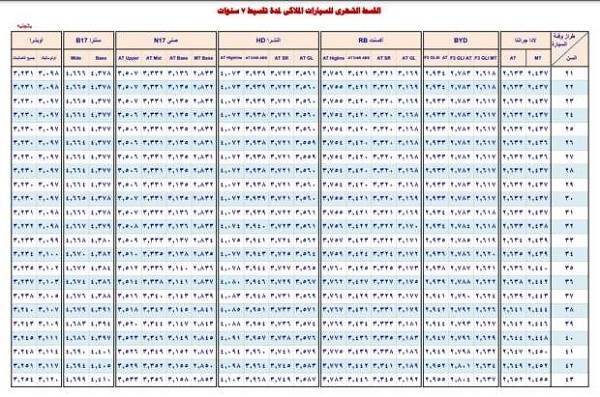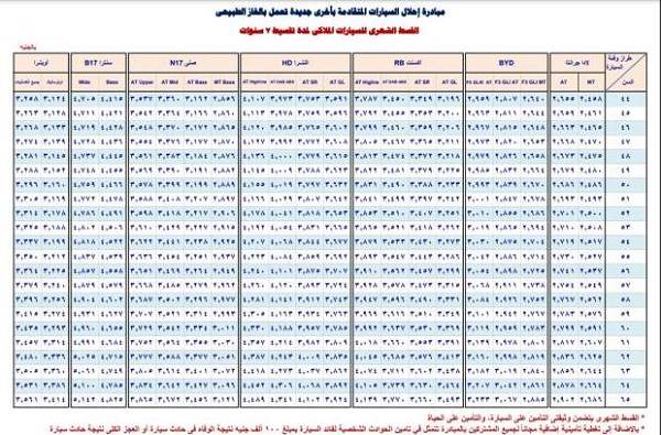 سادساً الأقساط الشهرية للسيارات الملاكي بمدة سداد تصل إلى 7 سنوات للمشاركين الذين تتراوح أعمارهم بين 44 حتى 65 سنة.