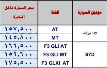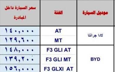 أولاً أسعار لادا جرانتا وبي واي دي f3 “ملاكي”