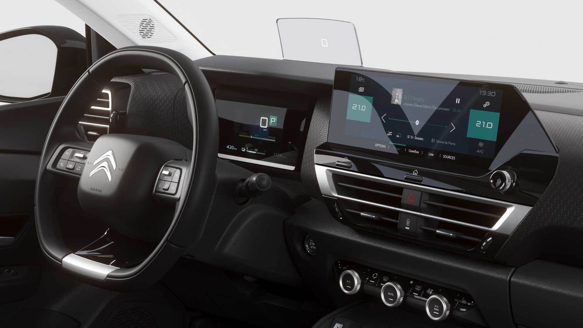 وتوفر المقصورة مساحة داخلية كبيرة في الأمام والخلف وحتى في الصندوق الخلفي للسيارة كما أن مساحات التخزين مرتبة بشكل جيد. وتأتي شاشة السائق بعيدًا قليلاً عن لوحة العدادات ، مع ضوء LED المحيط والشاشة الرقمية نفسها منخفضة جدًا ، ولكن يمكن من خلالها استخراج المعلومات التي يرغب بها السائق. أما شاشة اللمس الرئيسية فهي أكبر في الحجم وتأتي مع زوجين من الازرار لنقل السائق إلى الإعدادات المتعلقة بالسيارة ، والعودة إلى الشاشة الرئيسية. ويوجد أمام الراكب درج رفيع يفتح ليكشف عن إطار لتركيب جهاز لوحي حتى يتمكن من مشاهدة وسائل الترفيه الخاصة به. كما نجحت جهود سيتروين في التخلص من الضوضاء التي تصل للمقصورة .