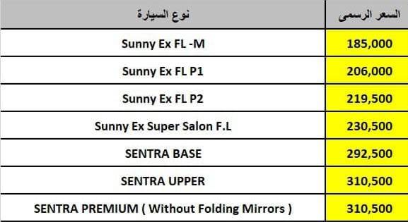وينشر “مارشدير”، القائمة السعرية الخاصة بجميعفئات السيارتين نيسان صني ونيسان سنترا 2021 .