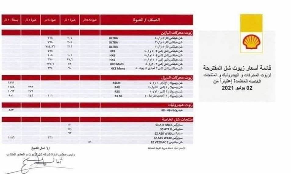 ننشر أحدث قائمة سعرية لزيوت شل في يونيو