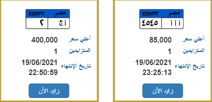 نهاية المزاد علي لوحات سيارات جديدة