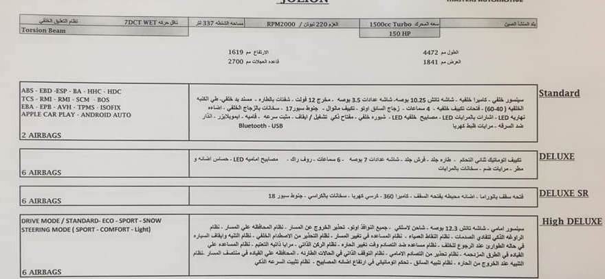 تتوافر السيارة هافال جوليان بـ 4 فئات من التجهيزات، ويوضح المنشور التالي مواصفات جميع فئات السيارة.
