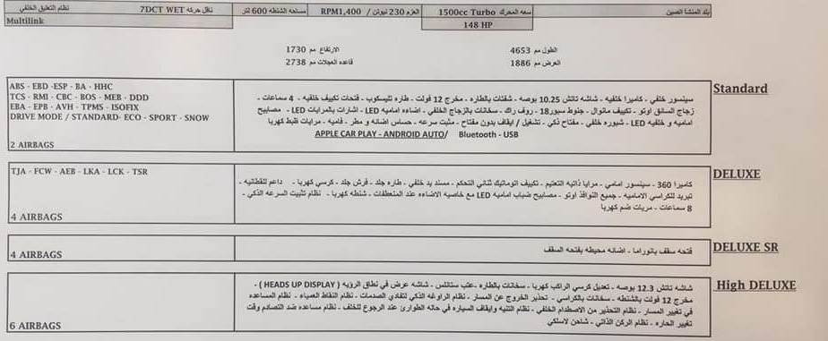 تتوافر السيارة هافال H6 بـ 4 فئات من التجهيزات، ويوضح المنشور التالي مواصفات جميع فئات السيارة.