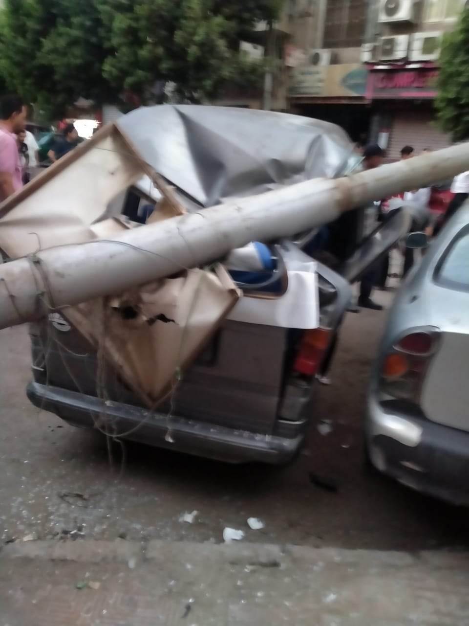 تلفيات لسيارات بمصر الجديدة بسبب عمود انارة