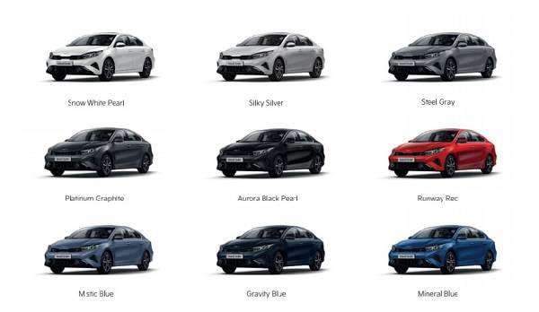 تتوافر كيا جراند سيراتو بـ 9 ألوان متميزة تناسب جميع الأذواق والاختيارات.
