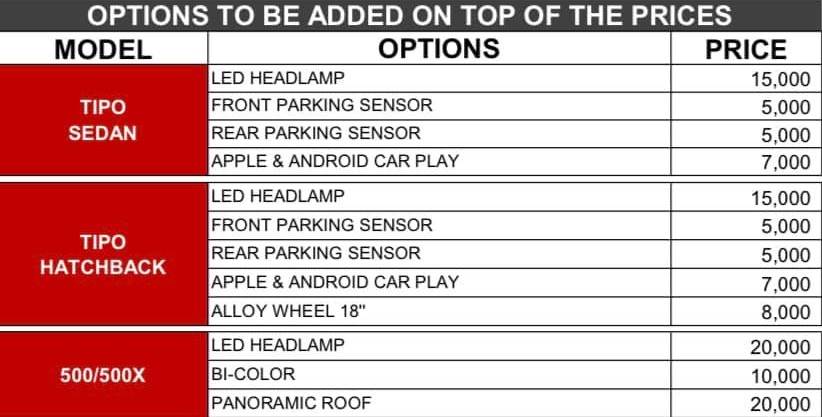كما أعلنت الشركة أسعار الكماليات لسياراتها كالتالي :
