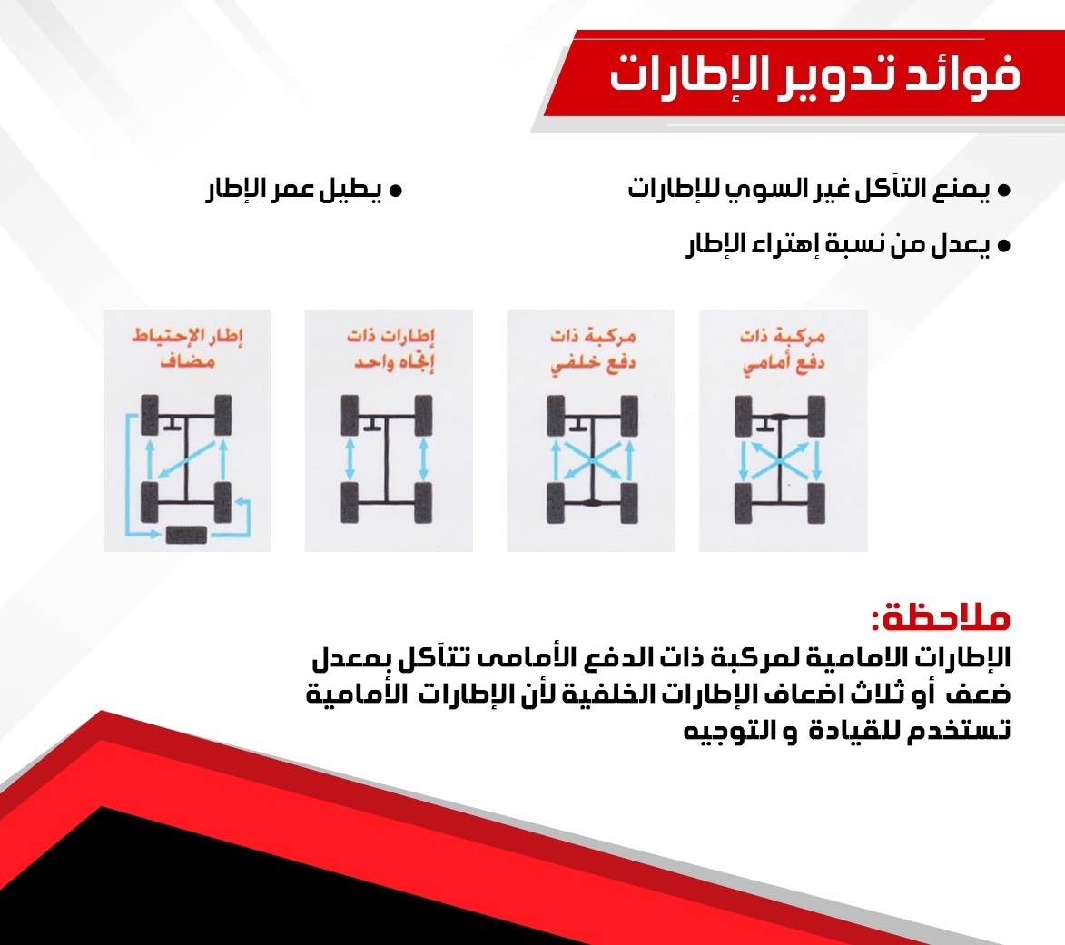 كما نقدم جراف آخر يوضح فوائد تدوير الإطارات بالسيارة حيث أنه يوفر التالي : 1- يمنع التآكل غير السوي للإطارات. 2- يطيل من عمر الإطار. 3- يعدل من نسبة اهتراء الإطار.