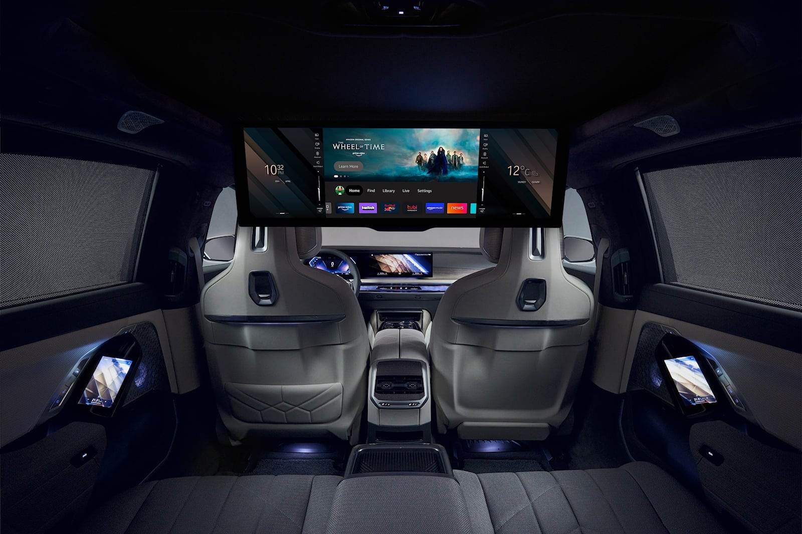 شاشة مسرح BMW الموجودة في الفئة السابعة ، وشقيقتها الكهربائية بالكامل i7 تعتبر مذهلة. ويبلغ قياسها 31 بوصة بدقة 8k تعد الأولى من نوعها بالعالم. ويمكن طيها من السقف لمنح ركاب المقعد الخلفي إمكانية الوصول إلى Amazon Fire TV والوسائط الأخرى. وعندما يتم انزال هذه الشاشة ، ينحني المقعد الأيمن الخلفي ، ويتم تظليل المقصورة ، ويوفر نظام الصوت المحيطي Bowers & Wilkins Diamond المكون من 36 مكبر صوتًا رباعي الأبعاد اهتزازات يتم التحكم فيها مغناطيسيًا في مساند الظهر لتتناسب مع الصوت الصادر من مكبرات الصوت.