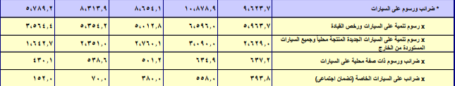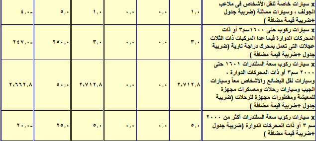 اجمالي الضرائب على السيارات حسب السعة والاستخدام
