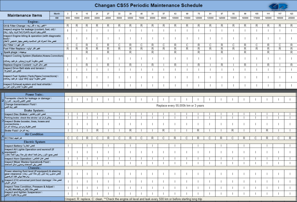 جدول صيانة شانجان CS55 Plus موديل 2024
