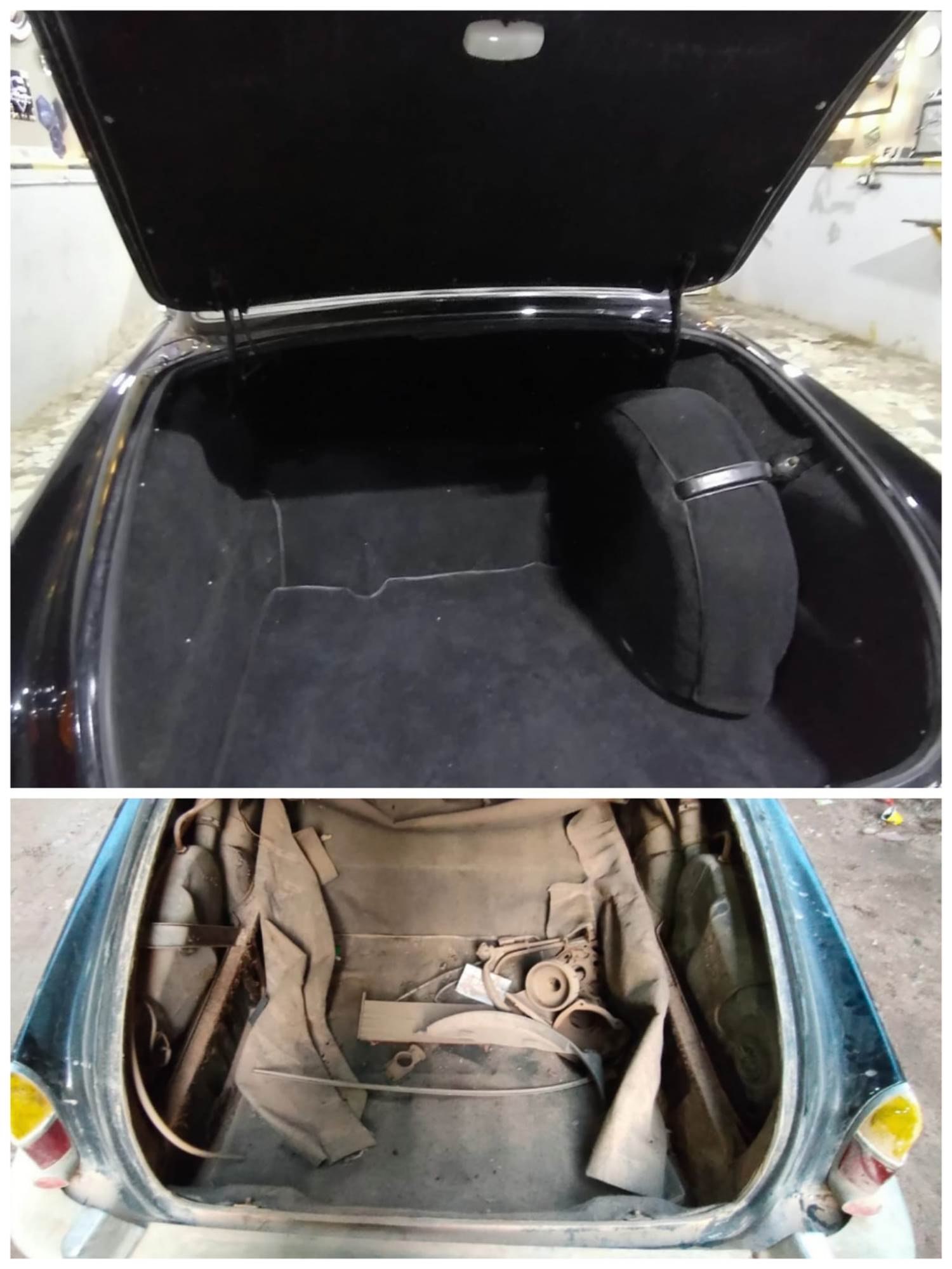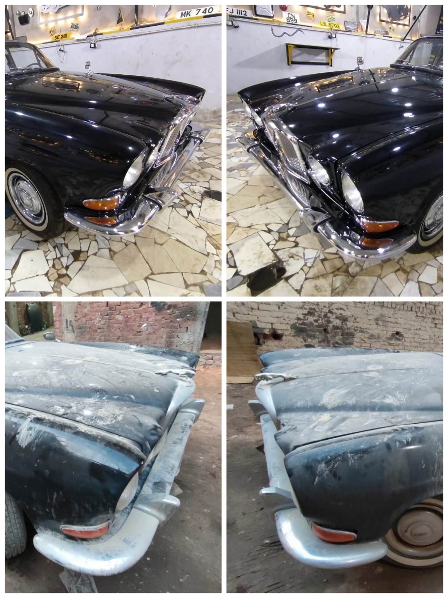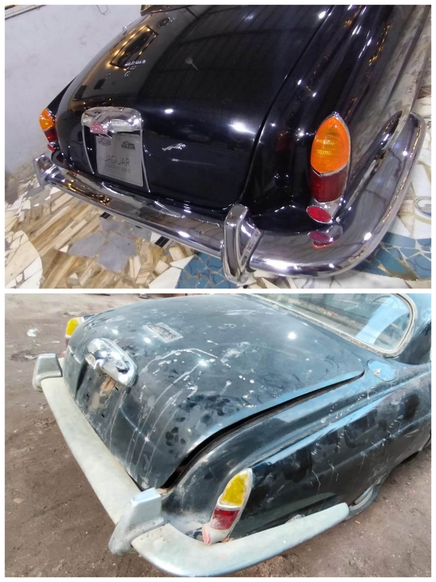 وأكد أنه قام في البداية بإزالة فرش السيارة بالكامل بسبب اهترائه وازالة القشرة الخشبية القديمة وتم العمل بمواصفات خاصة وطلاء خاص لدي الفنيين المتخصصين لترميم السيارة وترميم مقصورتها بالكامل . كما تم التخلص من الصدأ في جسم السيارة الخارجي وتم طلائها بالكامل بلونها الأصلي من جديد مع استيراد بعض الأجزاء من الخارج من أجل عملية الترميم بما في ذلك شعار علامة جاجوار وبعض أجزاء المقصورة مثل أزرار التحكم وغطاء السماعات والراديو .