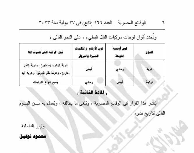 قرار جديد بتعديل مواصفات لوحات السيارات وألوانها في مصر