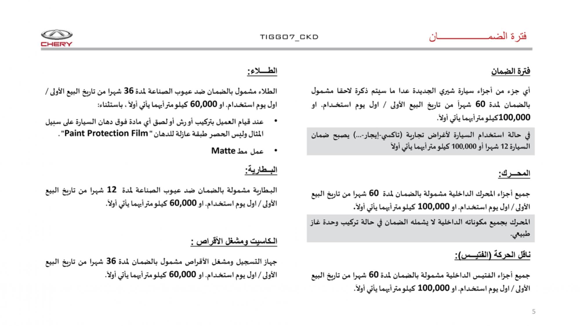 أسعار ومواصفات شيري تيجو 7 موديل 2024 بالضمان وقطع الغيار