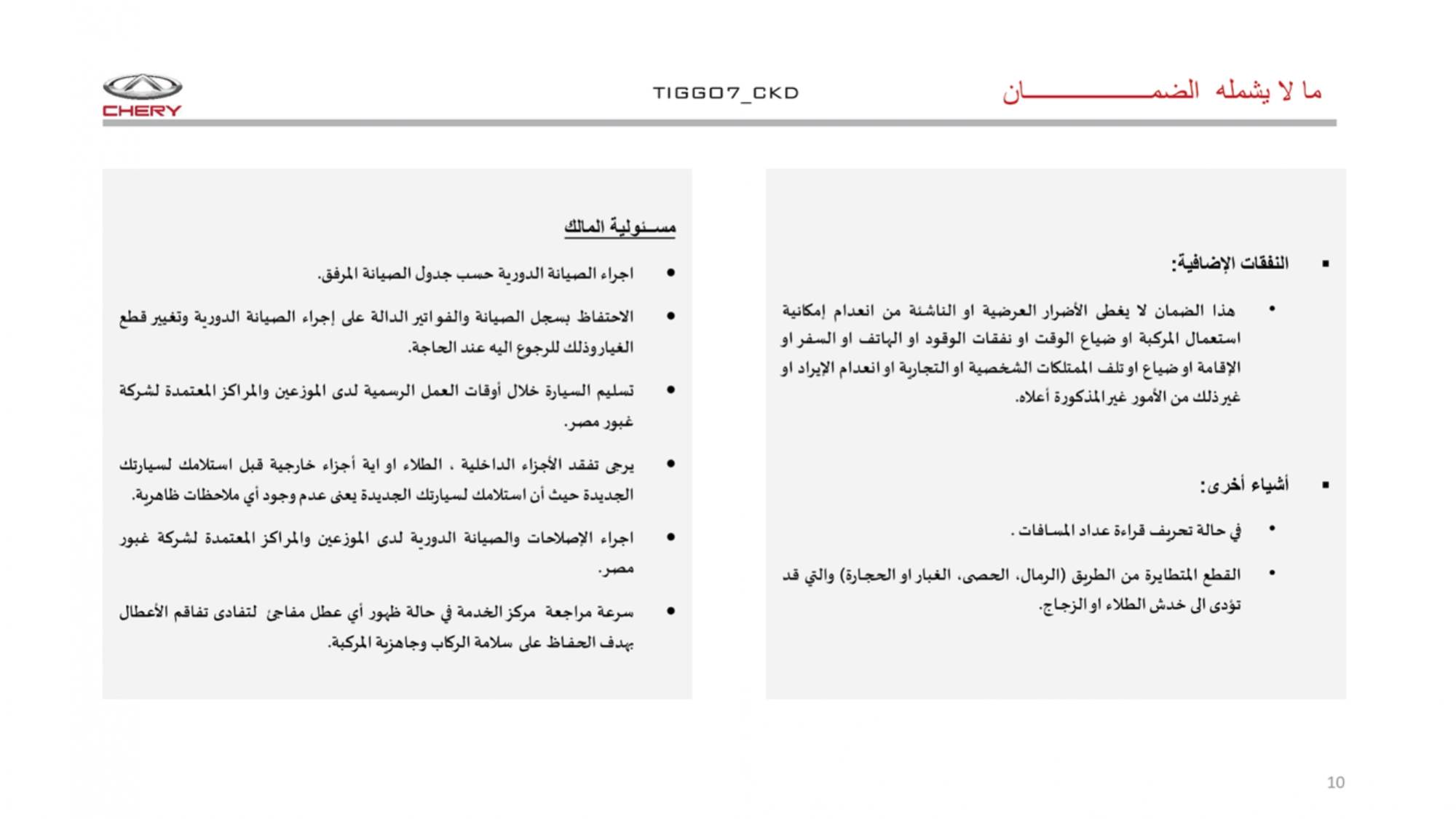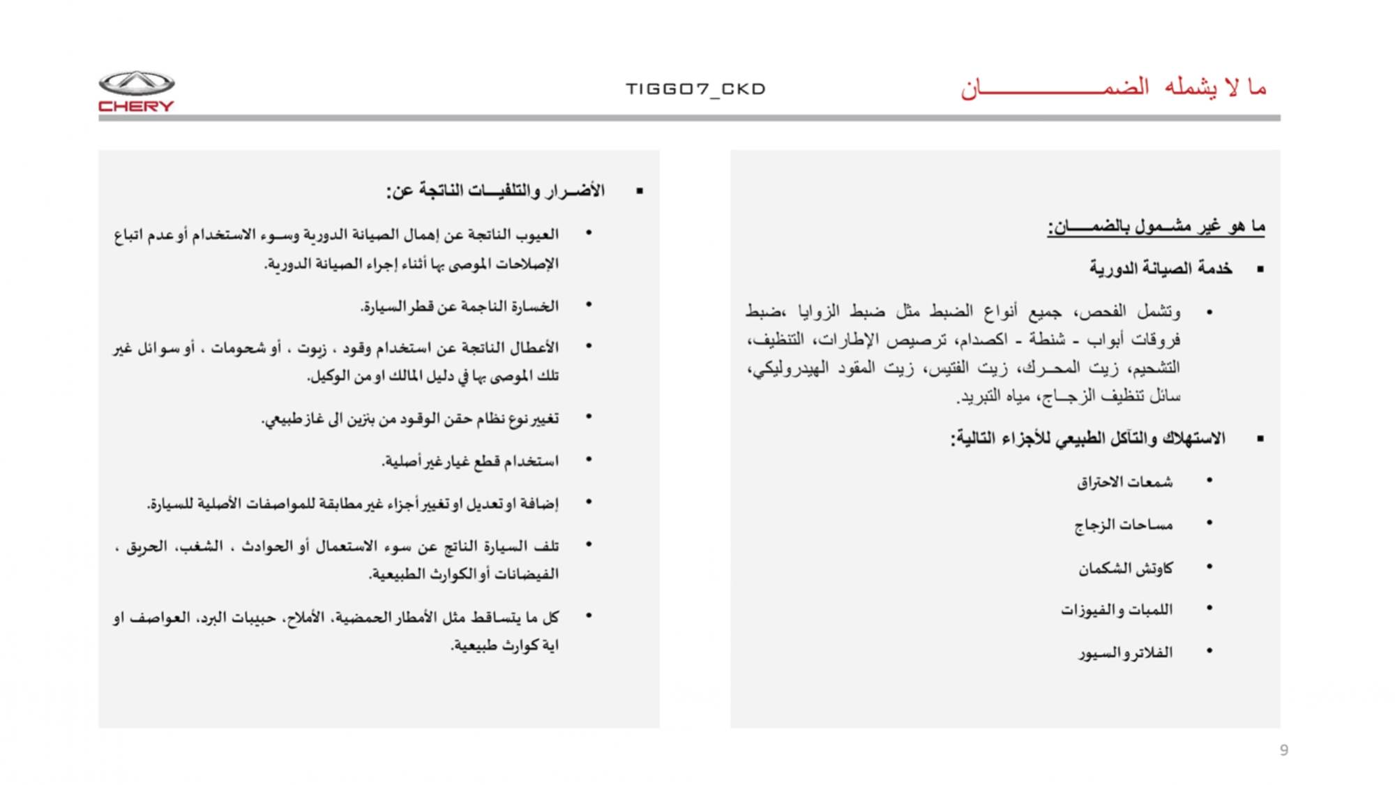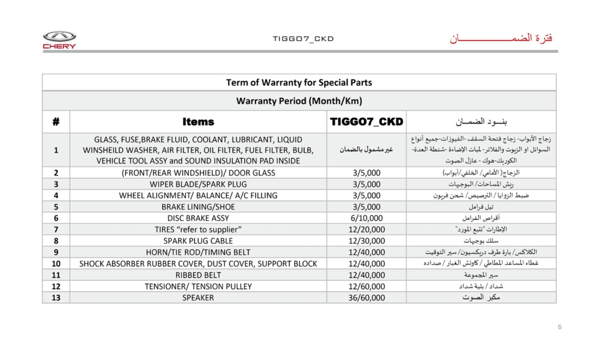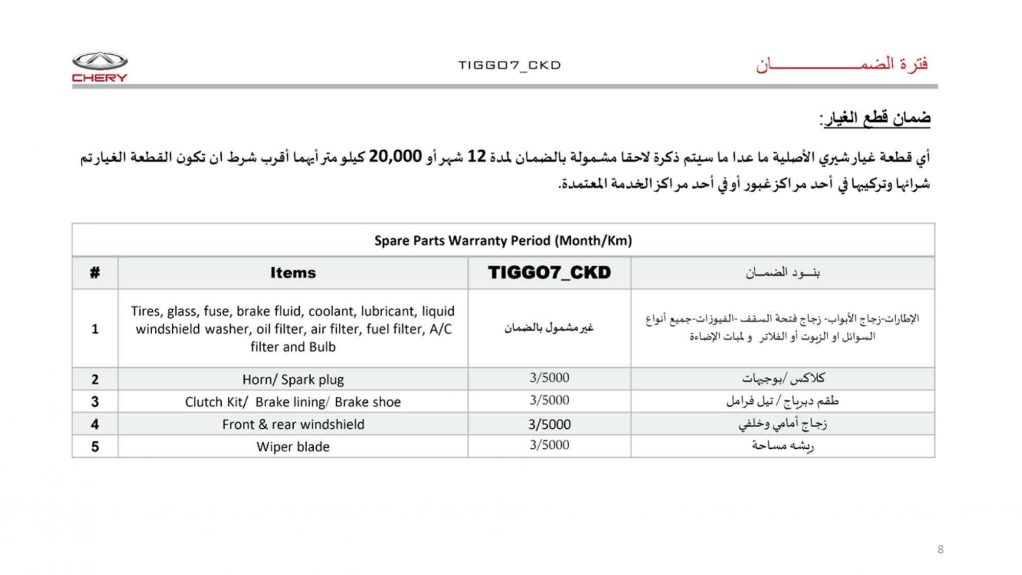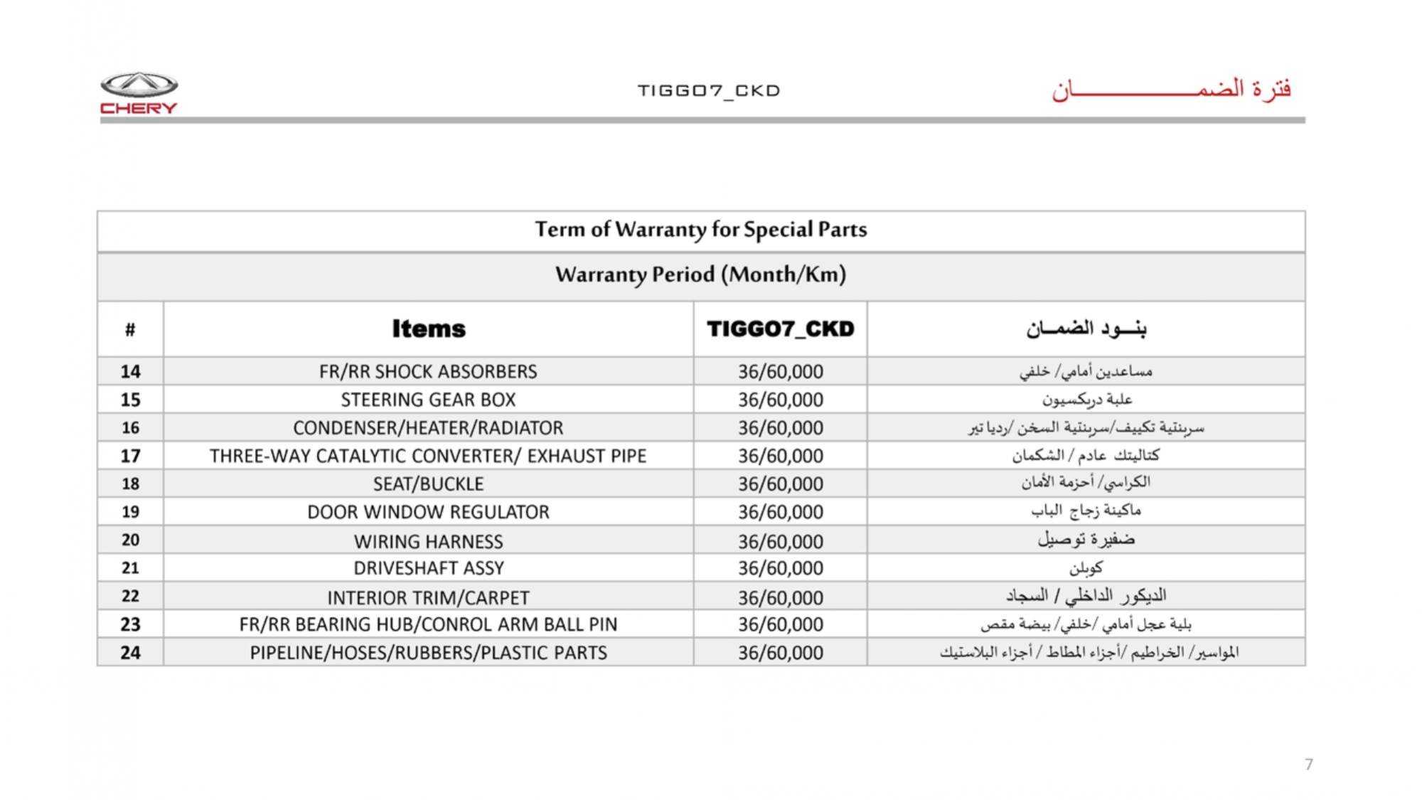 وتشمل قطع غيار شيري تيجو 7 موديل 2024