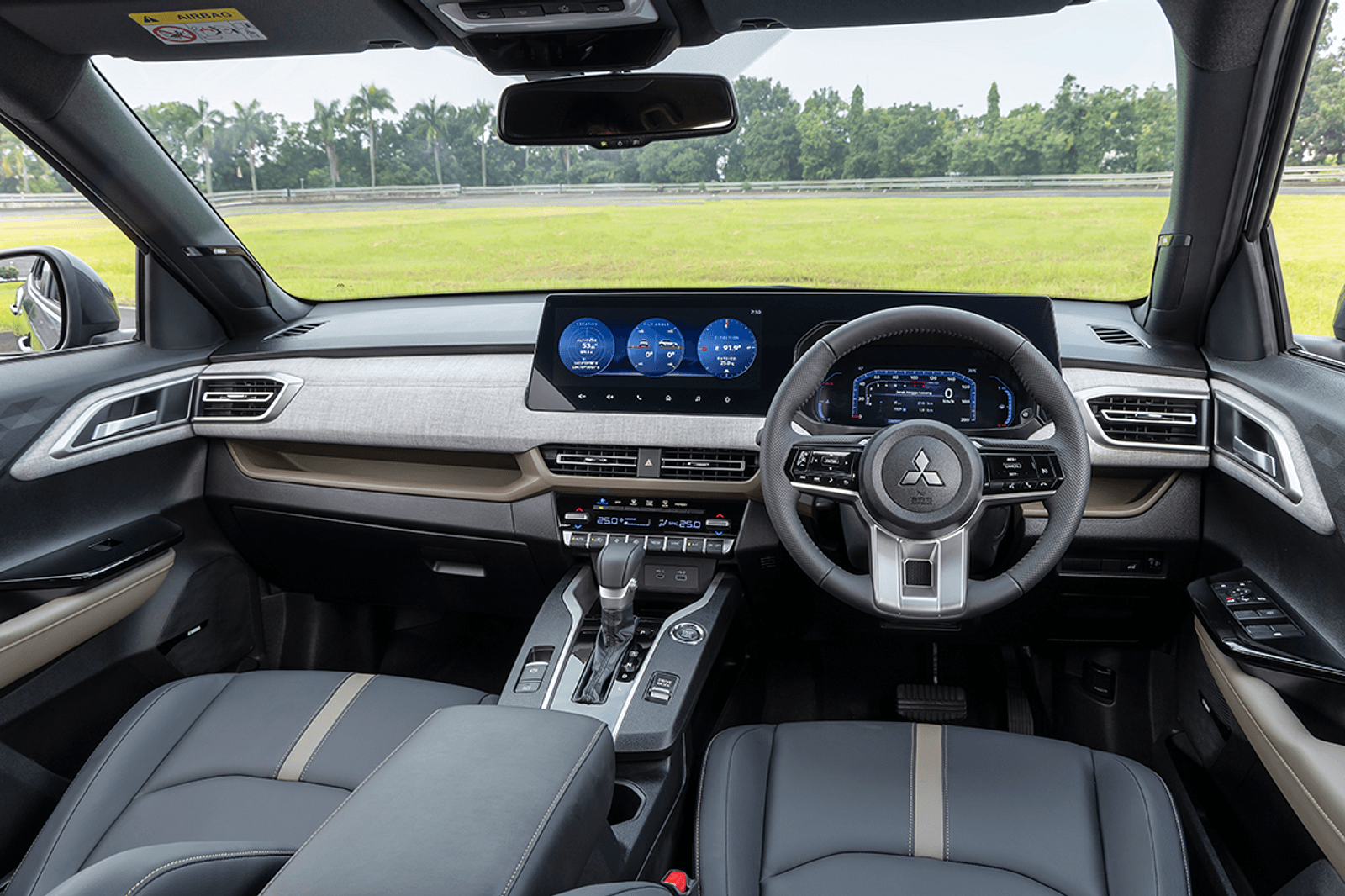 ومن الداخل ، تتميز XForce بشاشة معلومات ترفيهية تعمل باللمس مقاس 12.3 بوصة ومجموعة عدادات رقمية مقاس 8 بوصات. وهناك أيضًا نظام صوتي مكون من 8 مكبرات صوت تم تطويره بواسطة ياماها كجزء من تعاون ميتسوبيشي ياماها. وتحصل XForce أيضًا على فتحات USB متعددة وحوامل الهواتف الذكية وشاحن لاسلكي في الكونسول الوسطي. وعند الحديث عن ذلك ، فإنها تحصل أيضًا على حجرة تخزين مبردة. وتتميز المقاعد بفرش من القماش مقاوم للبقع ويمكن أيضًا طي المقاعد الخلفية.