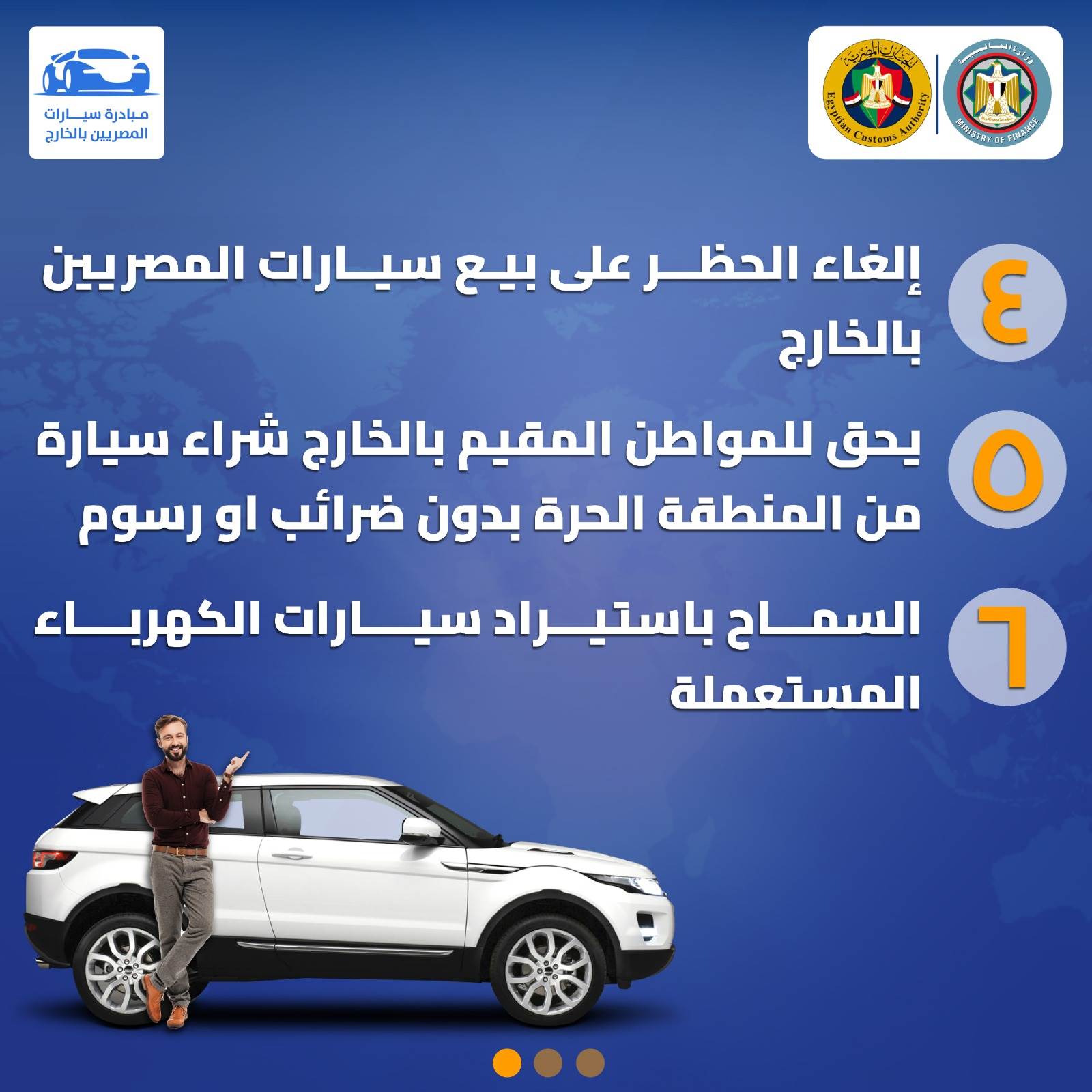 يحق للمواطنين المقيمين خارج مصر شراء سيارة من المنطقة الحرة بدون ضرائب أو رسوم