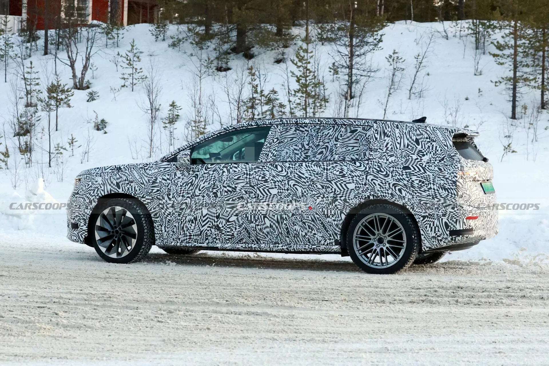 قدمت سكودا الطراز التجريبي Vision 7S منذ ما يقرب من عامين، لكن المصورون تمكنوا أخيرًا من التقاط صور لطراز الإنتاج. ومن المتوقع أن يطلق عليها اسم سبايس -  Space . وأكدت الشركة سابقًا أنه سيتم الكشف عنها في عام 2026. وتم التقاط الصور للسيارة أثناء اختبارها في شمال السويد، وهي عبارة عن كروس أوفر كهربائية بثلاثة صفوف وتتميز بتصميم عصري قوي. ومن الصعب معرفة التفاصيل، ولكن يمكن رؤية واجهة أمامية مستديرة مع مصابيح أمامية مائلة للخلف. وينضم إليها مدخل تهوية مركزي كبير.