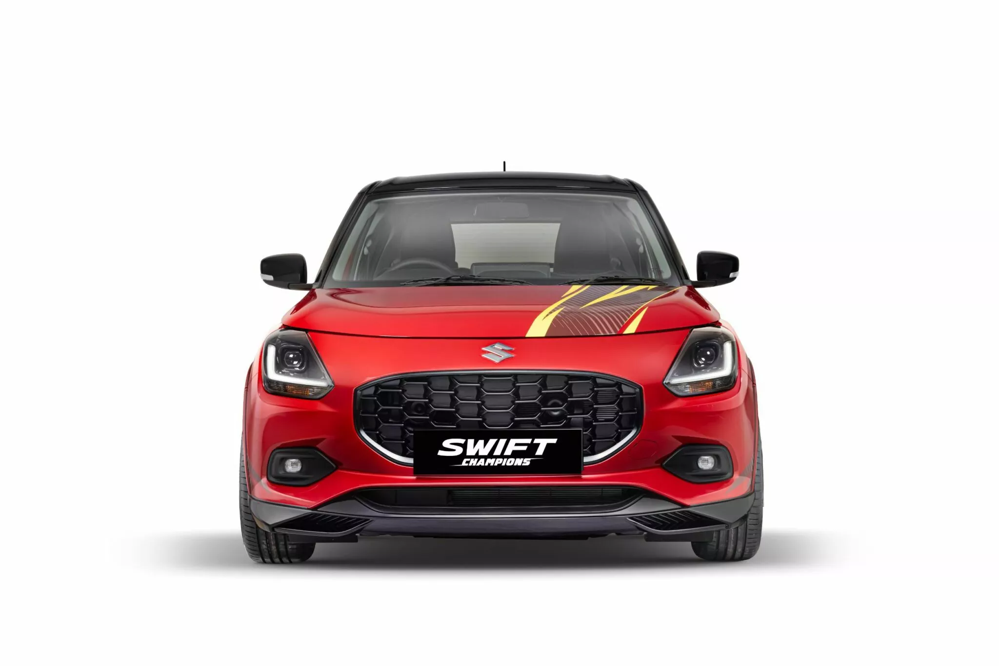 وبدءًا من موديل سوزوكي سويفت تشامبيونز التجريبي، يبدو الطراز جاهزًا للسباقات بفضل أجزاء ديناميكية هوائية أكثر حدة، وعجلات جديدة بإطارات بيضاء، وملصقات جريئة على هيكل السيارة الأحمر. ويمكن اعتبار هذا الطراز التجريبي كخليفة لطرازات سويفت سبورت التي سيتم إيقاف إنتاجها قريبًا، وذلك بفضل الجناح الخلفي الذي تم دمجه مع مشتت واضافات ديناميكية خلفية. وحصلت المكونات الديناميكية الهوائية على اللون الأسود، لتتناسب مع امتدادات أقواس العجلات والسقف.