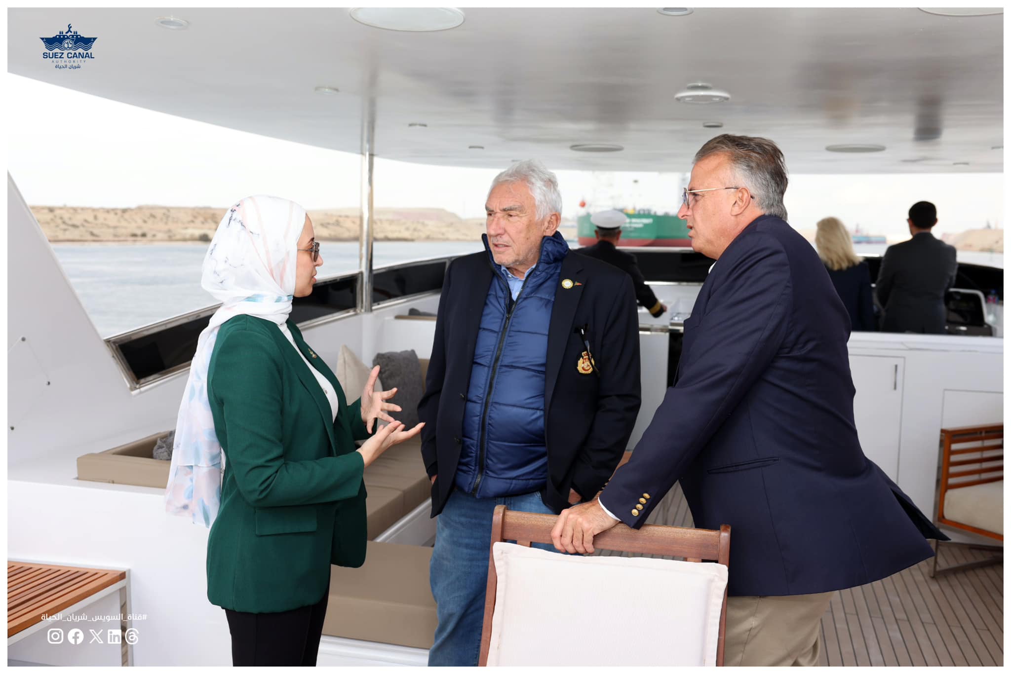 كما ثمن جهود قناة السويس في التوجه نحو توطين صناعة اليخوت بمستوى ومعايير عالمية، متمنيا التوفيق لكافة الخطط الاستراتيجية التي تنتهجها الهيئة. وتضمنت الزيارة،القيام بجولة بحرية في قناة السويس الجديدة، تلاها تفقد محاكيات التدريب بأكاديمية التدريب البحري والمحاكاة التابعة للهيئة، ثم زيارة متحف قناة السويس الوجهة السياحية الأبرز في محافظة الإسماعيلية.
