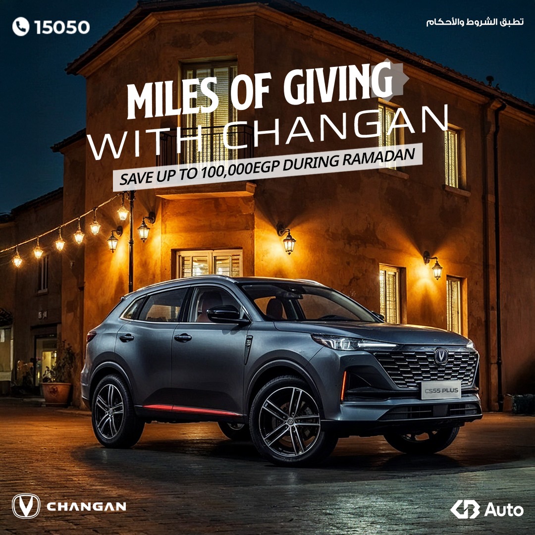 فى إطار حملتها "رحلة عطاء"، أعلنت  "جي بي أوتو"، الوكيل الحصري لسيارات شانجان في مصر، عن خصومات استثنائية تصل إلى 100,000 جنيه مصري على طرازات  UNI-T و CS 55 Plus و CS 35 Plus خلال شهر رمضان المبارك ، على ان تبدأ العروض فى الفترة من 23 فبراير وحتى 31 مارس 2025.