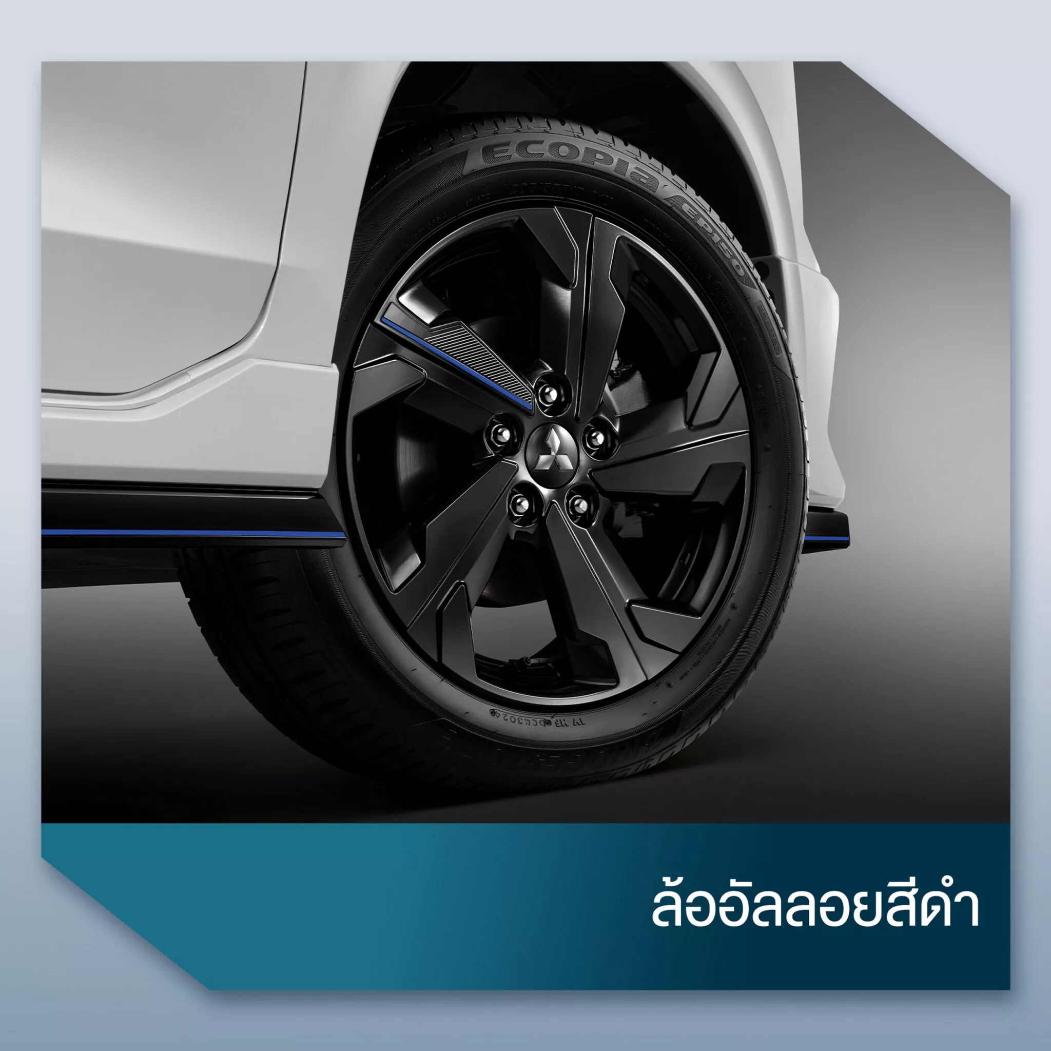 وتعتمد هذه الميني فان ذات الثلاثة صفوف على عجلات معدنية سوداء، ورغم أناقتها، إلا أنها تبدو أصغر حجمًا بالنسبة لأبعاد السيارة. وفي الخلف، أضافت ميتسوبيشي مشتت هواء أسود، وجناحًا خلفيًا كبيرًا، ومصابيح خلفية شفافة العدسات. وكما هو الحال مع سيارة إكسباندر الهجينة الكهربائية القياسية، يبقى نظام العادم مُخبّأً بعناية أسفل الصادم.