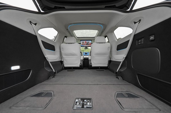كما تم توفير إمكانية الوصول وسهولة استخدام الصف الثالث، والتي غالبًا ما تكون محدودة في سيارات الـsuv. وتتميز المقصورة بمساحة قابلة للاستخدام تبلغ 7.7 متر مربع، وارتفاع داخلي يبلغ 1360 ملم، وعرض ممر يبلغ 165 ملم، مما يسمح للأطفال دون سن العاشرة بالتحرك بحرية. وشهد الصف الثالث من المقاعد تحسينات كبيرة، بما في ذلك إمكانية تعديل مسند الظهر والرأس كهربائيًا بشكل غير محدود، وإمكانية طيّ المقاعد بشكل مسطح بالكامل، مما يوفر مساحة أكبر مقارنةً بالصف الثاني من سيارة مرسيدس-بنز GLE.