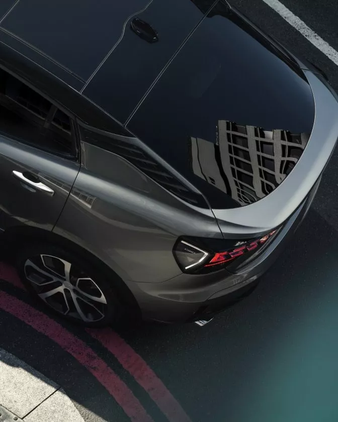 وفي الخارج تتميز السيارة باضاءة نهارية خاصة ومصابيح أمامية LED كاملة للضوء العالي والمنخفض ونظام الاضاءة الأمامية المقابلة للتكيف مع تعديل تلقائي للاضاءة وتشغيل وايقاف آلي للاضاءة ونظام التتبع للمنزل ومصابيح خلفية LED بتصميم مكعبات الضوء المتجاورة. كما يتوفر لها مصابيح ضباب أمامية باشارات انعطاف ومصابيح ضباب خلفية LED ومظلة بانورامية وزجاج عازل للصوت وفتحة سقف بانورامية. كما تأتي بحساسات مطر ومرآة الرؤية الخلفية الخارجية بتسخين وتبريد ووظيفة الذاكرة وضوء ترجيبي .