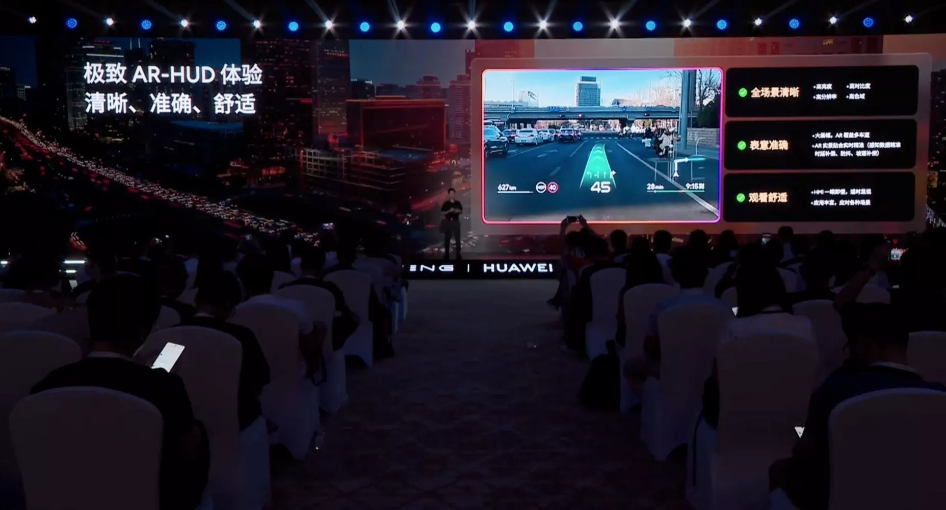 وظهرت شاشة العرض الأمامية الجديدة لأول مرة في فعالية إعلامية حديثة في الصين، وهي بعيدة كل البعد عن البساطة. يمتد النظام، على ما يبدو، على كامل عرض الزجاج الأمامي تقريبًا، ويضاهي شاشة كبيرة جدًا مقاس 87 بوصة مع نسبة تباين 1800:1. تظهر الصور التي نشرتها الشركة دمج الواقع المعزز بسلاسة في تجربة القيادة، حيث تعرض الصور مباشرةً على الطريق أمام السائق.