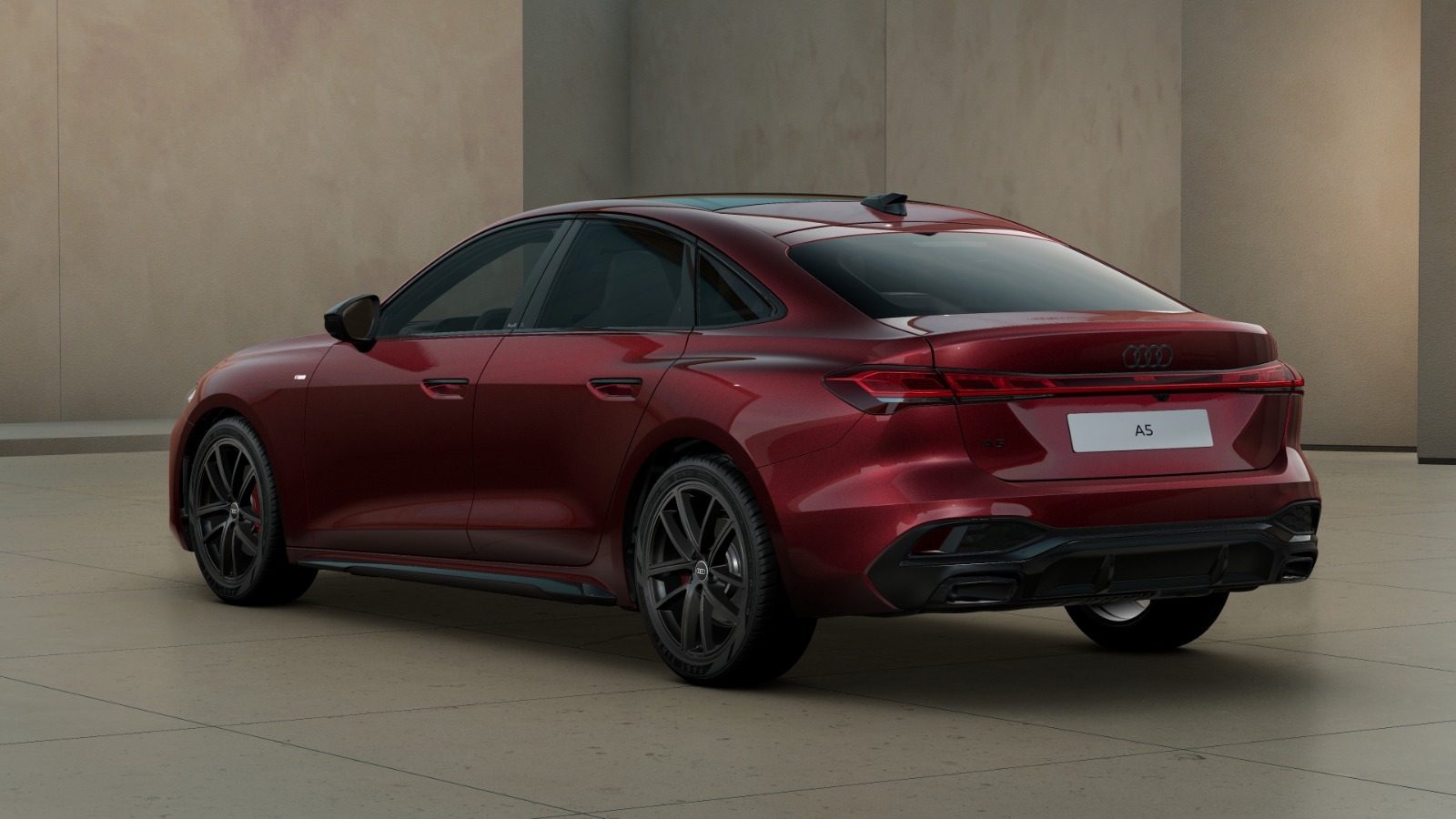 وإلى جانب الخيارات المتنوّعة لطلاء الهيكل الخارجي التي يُمكن للعملاء الاختيار فيما بينها، يبلغ الطول العام للسيارة آودي A5 الأحدث 4829 ملم، في حين يبلغ العرض والارتفاع 1860و 1444 ملم على الترتيب، أمَّا قاعدة العجلات فجاءت بطول 2892 ملم. ومع هذه الأبعاد الكبيرة والاستعانة ببنية هيكلية جديدة متطوّرة من فئة Premium Platform Combustion، لم تَعد آودي A5 تنتمي بشكل كبير إلى فئة السيارات المُدمجة، مما يجعلها توفّر تجربة قيادة عملية أكثر راحة لجميع الركّاب الخمسة على متنها.
