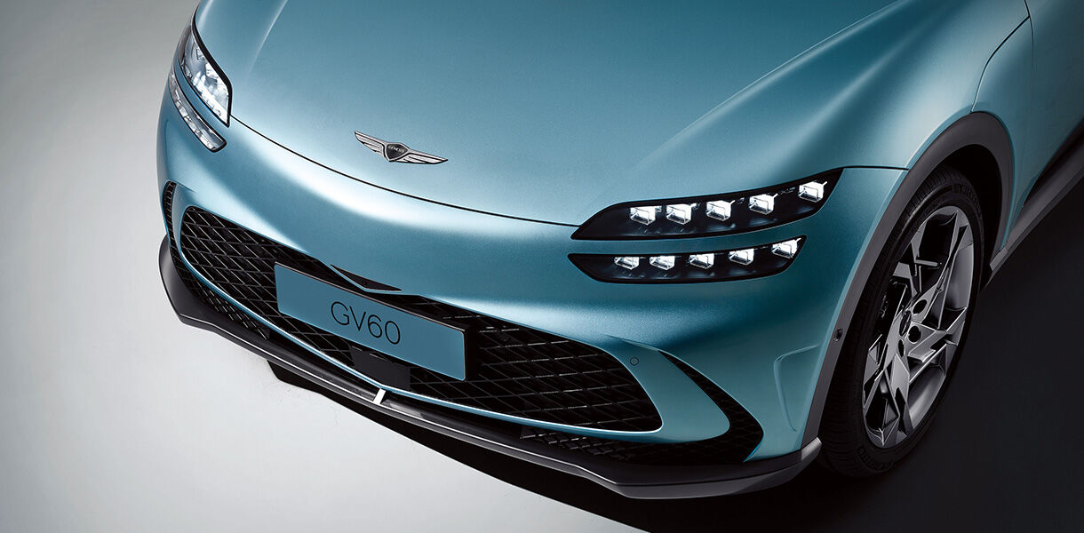 للمرة الأولى في جينيسيس، تتميز GV60 بغطاء محرك صدفي، وهو عبارة عن لوحة واحدة تجمع بين غطاء المحرك والرفارف، مما يُضفي عليها مظهرًا أنيقًا.