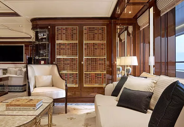 يوفر تصميم أماديا الداخلي الفاخر، من تصميم زوريتي ديزاين ، فخامةً وراحةً لا مثيل لهما لما يصل إلى 18 ضيفًا. كما يستوعب اليخت طاقمًا من 36 فردًا ، مما يضمن مستوى خدمة استثنائيًا لجميع الركاب. ومن بين ميزاته المميزة مسبح كبير، وجاكوزي، ومنصة هبوط لطائرات الهليكوبتر، وحديقة شتوية رائعة على سطح التشمس.